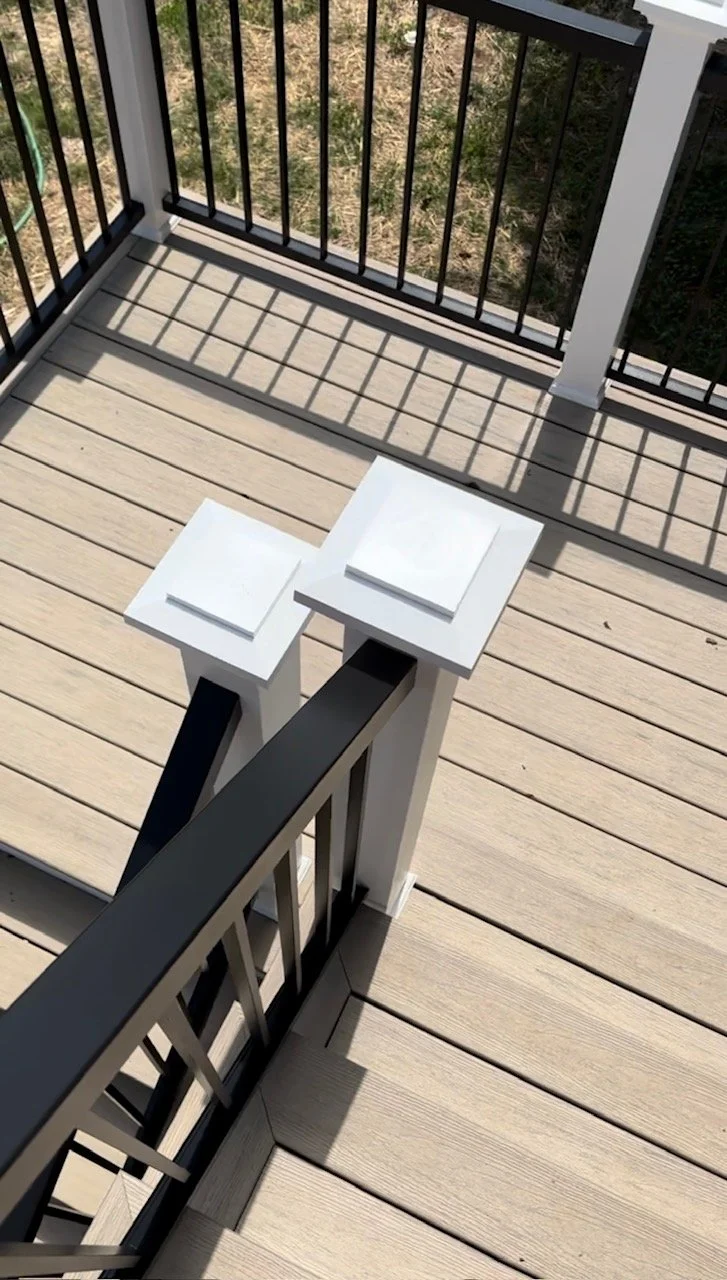 Matte 4”x4” Composite Rail Post Sleeves with “Island” Post Caps from TimberTech