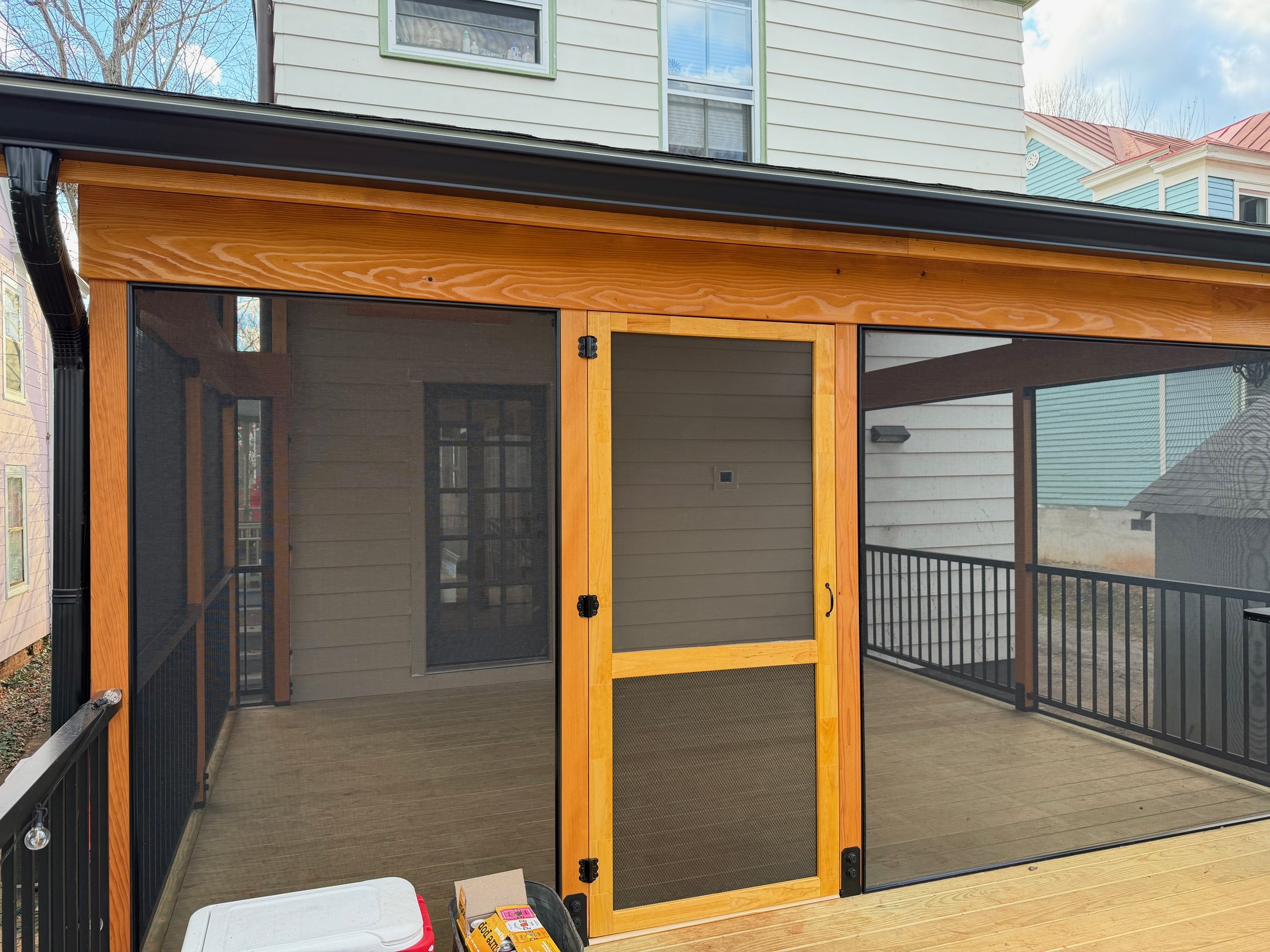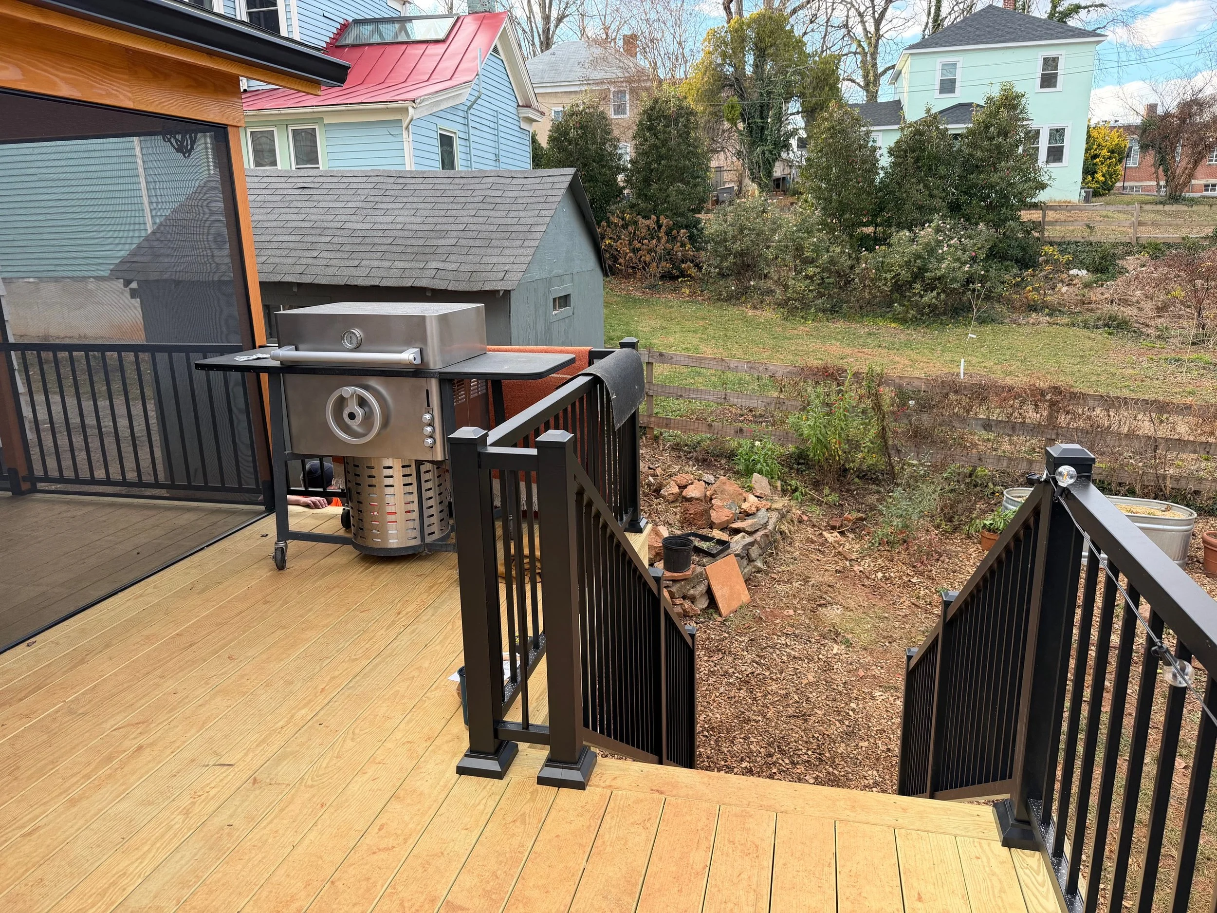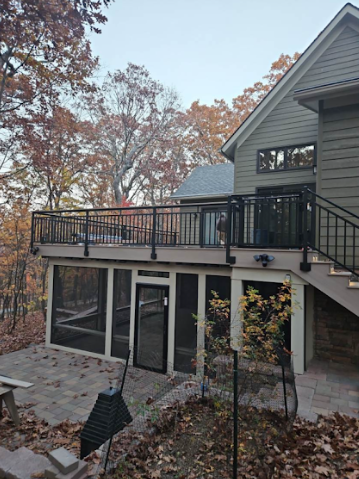 Wood decking with TimberTech Aluminum Railings + Screen-eze System