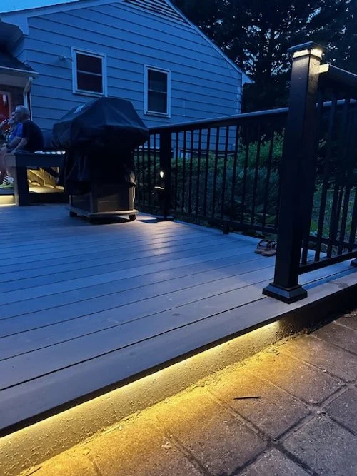 TimberTech Deck Replacement and Extension with Added Electrical Features + Patio, Retaining Walls, Lighing, and Walkway