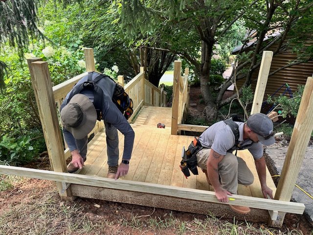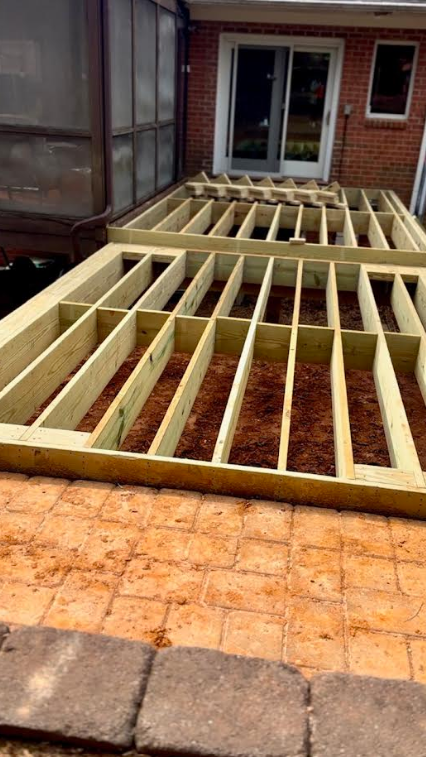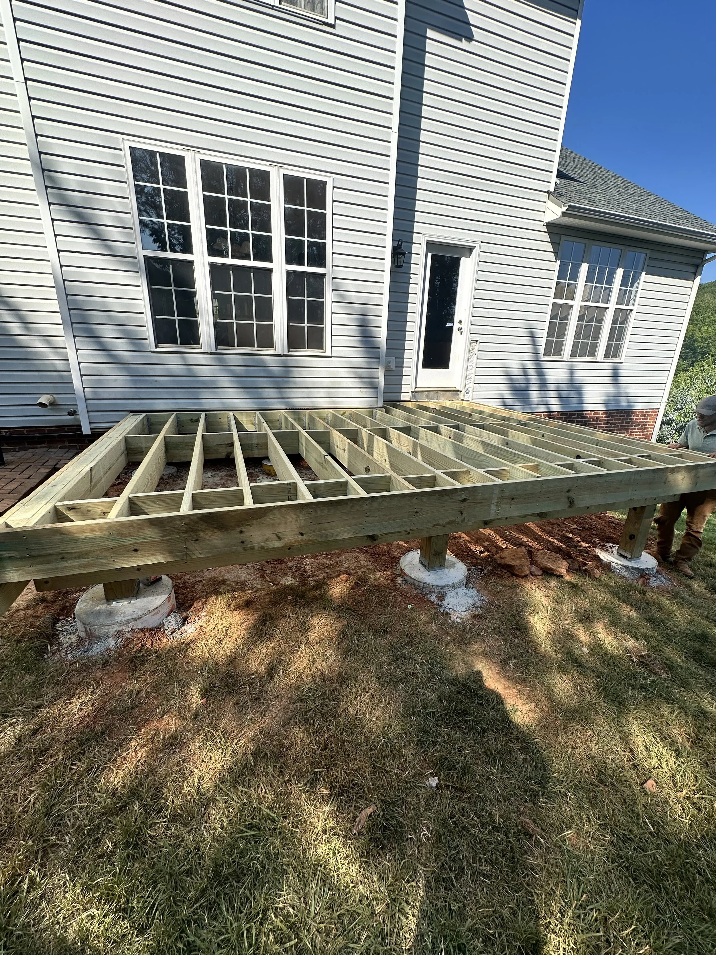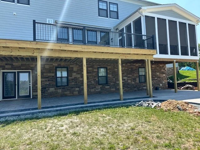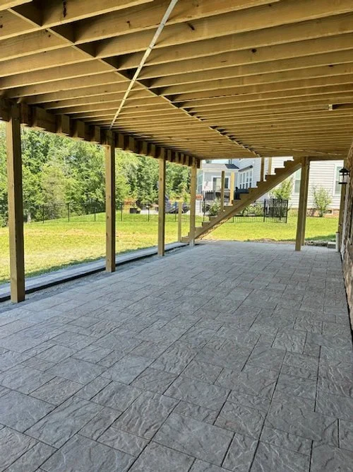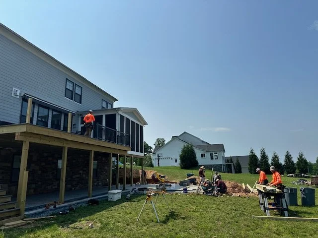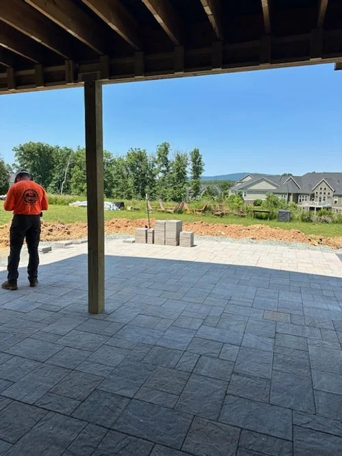 During construction — Strategic demolition to install proper deck footings while being able to put paver patio back in place with minimal disturbance