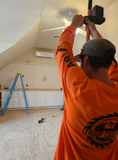 Using lasers to ensure everything is level & continues to stay level during the installation of the V-Groove panel wall