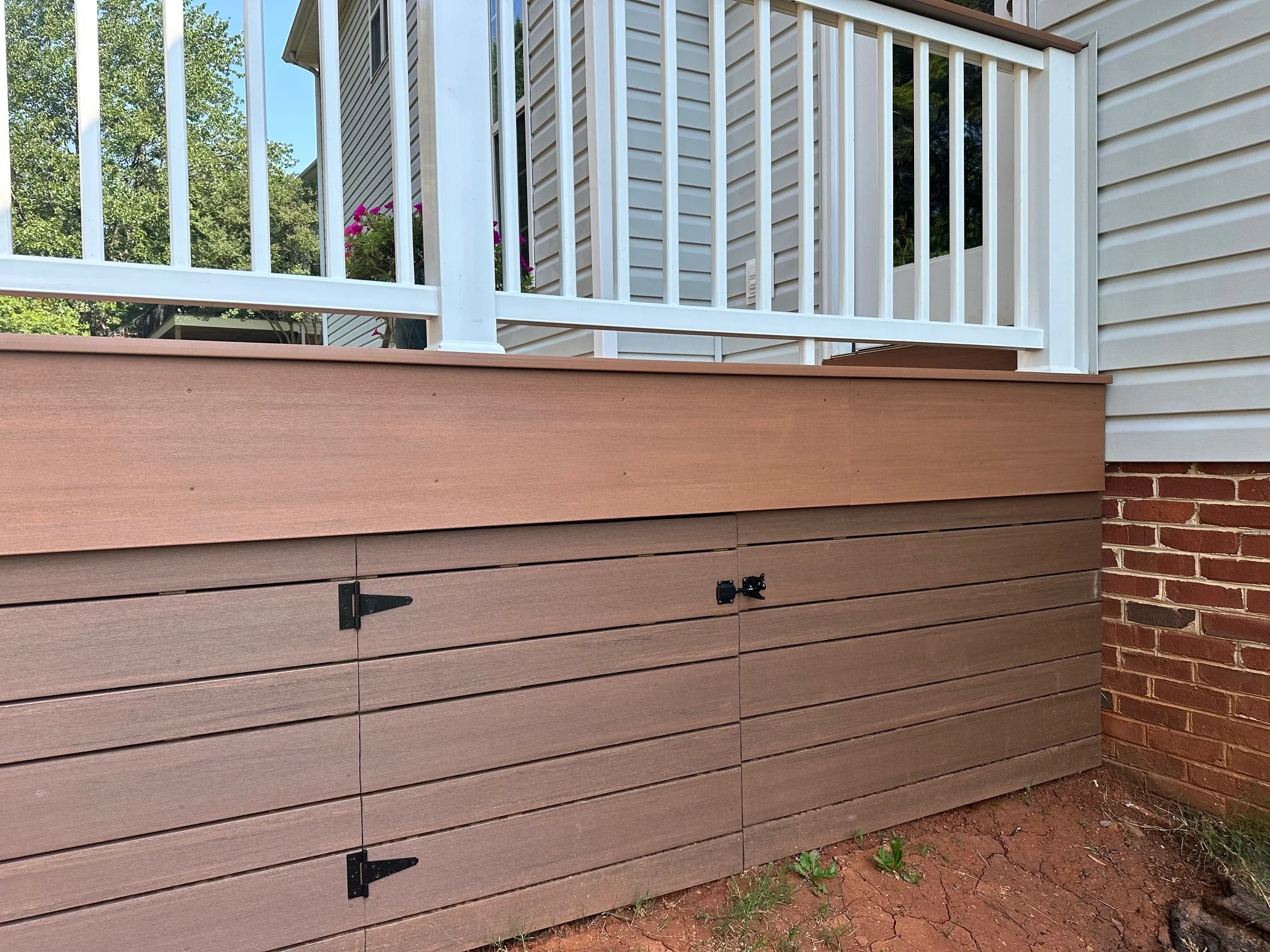Decking: TimberTech’s “Reserve Collection” in the color “Reclaimed Chestnut”